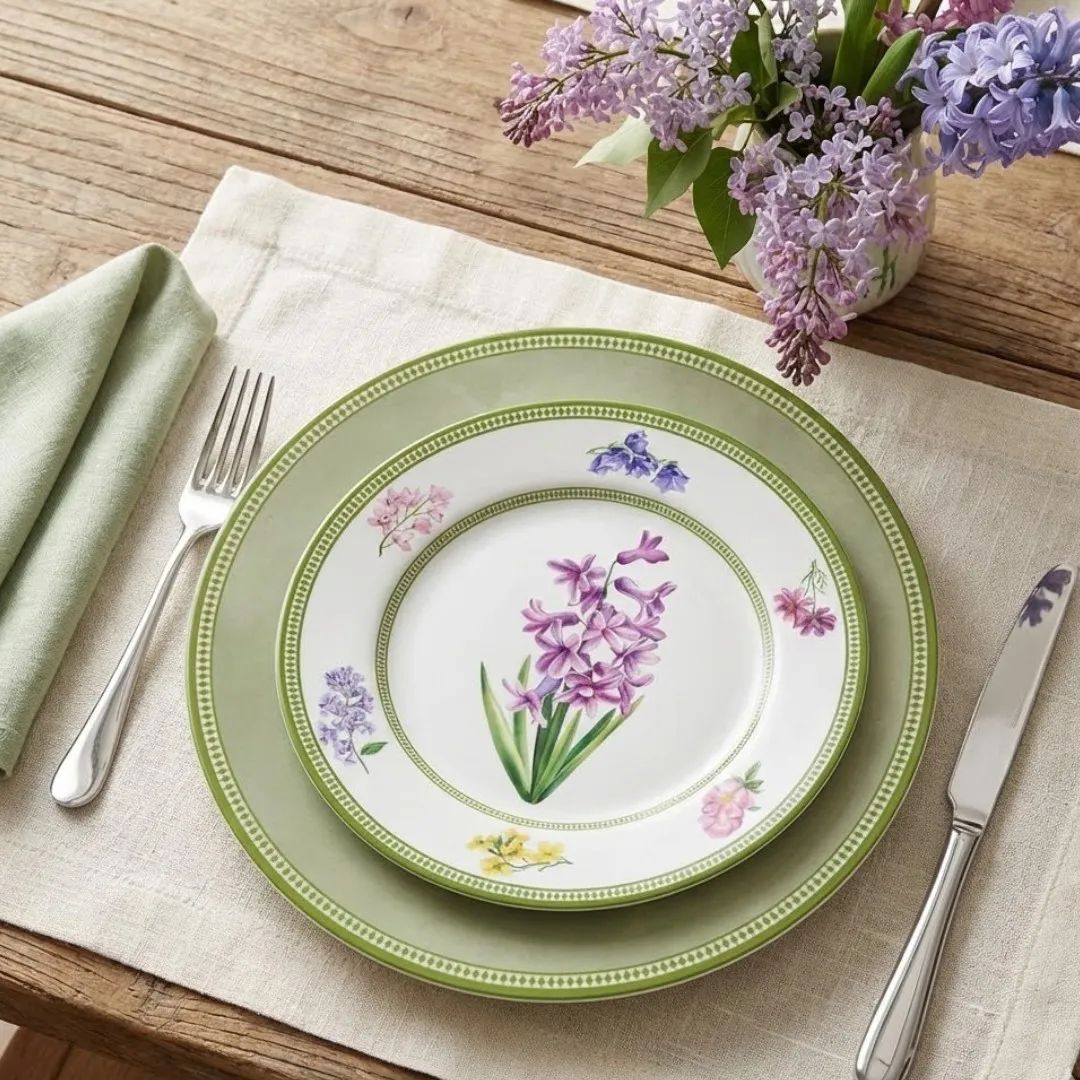 A Coleção Versailles é um convite à sofisticação. Suas louças trazem delicadas flores em tons suaves, combinadas ao frescor do verde que contorna cada peça com elegância. Inspirada no charme clássico dos jardins franceses, ela transforma qualquer mesa posta em um cenário refinado, acolhedor e cheio de estilo. Ideal para receber com beleza e impressionar em todas as ocasiões.