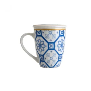 Caneca de Porcelana com Tampa e Filtro Azul e Branca