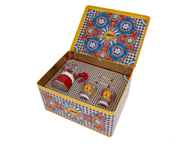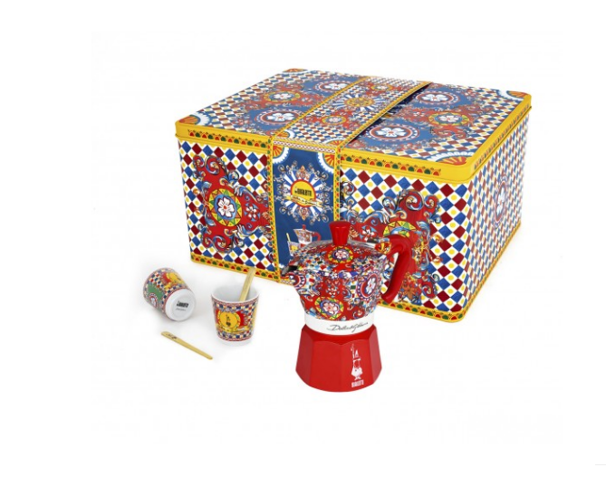 Dois ícones do Made in Italy se encontram para celebrar a beleza do ritual do café italiano. Assim nasceu o precioso Kit Bialetti Dolce&Gabbana composta pela combinação da legitima Moka Express juntamente ao Carretto Siciliano Dolce&Gabbana.