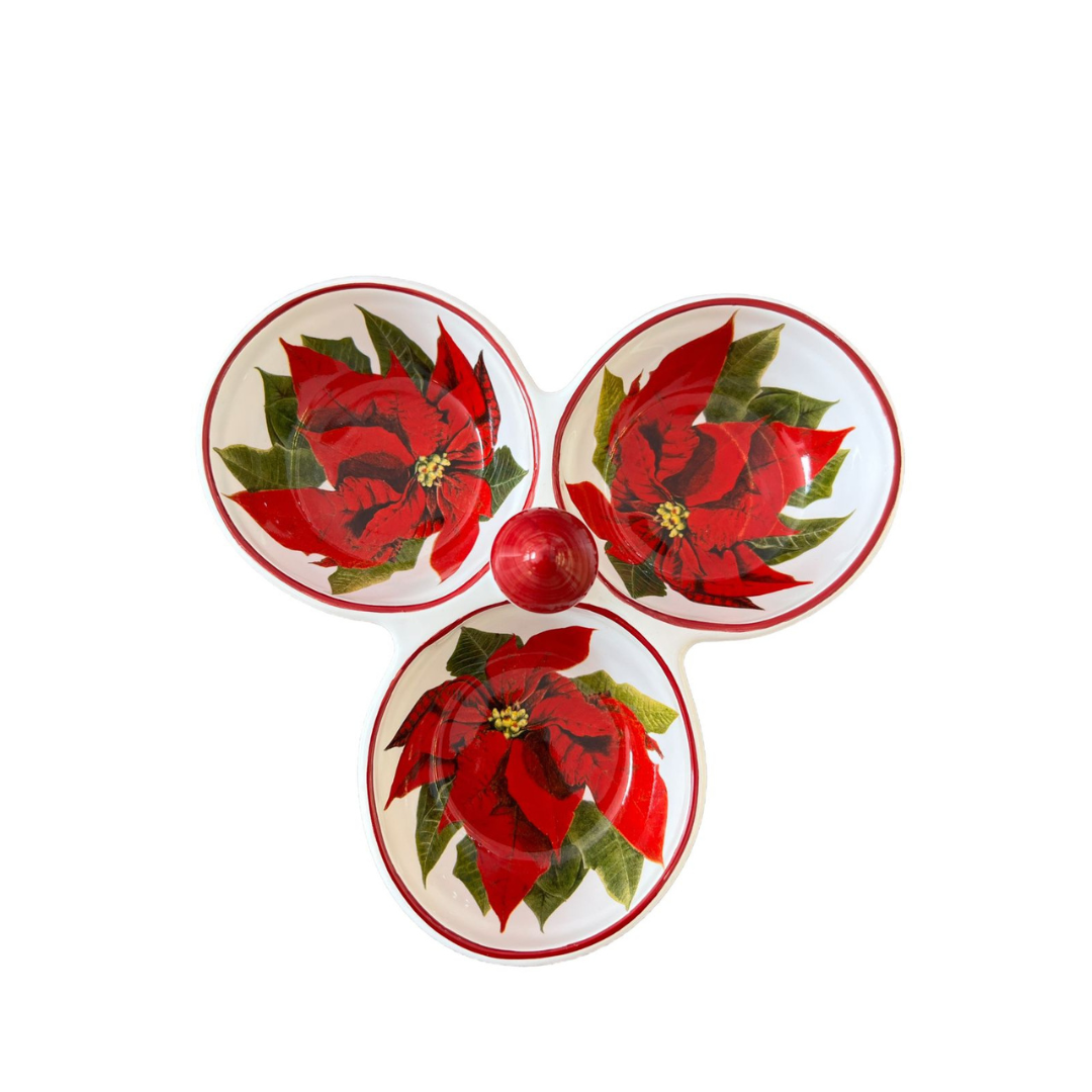 Petisqueira tripla para servir na mesa posta ou presentear. Uma bela opção de presente natalino. Coleção  Luiz Salvador.