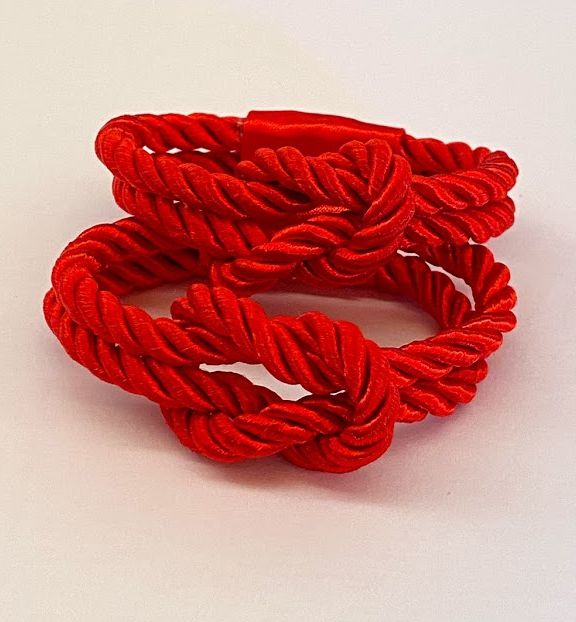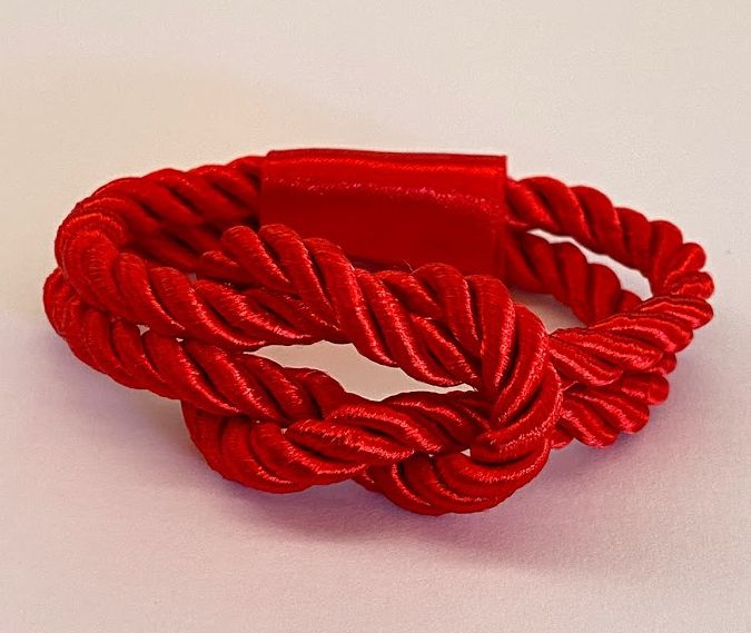 Porta-guardanapo em corda com nó naútico, na cor vermelha.