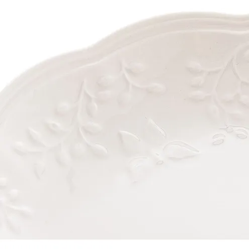 A porcelana New Bone oferece durabilidade excepcional e resistência a rachaduras, garantindo que este prato mantenha sua beleza ao longo do tempo, sendo uma adição valiosa à sua coleção de mesa.