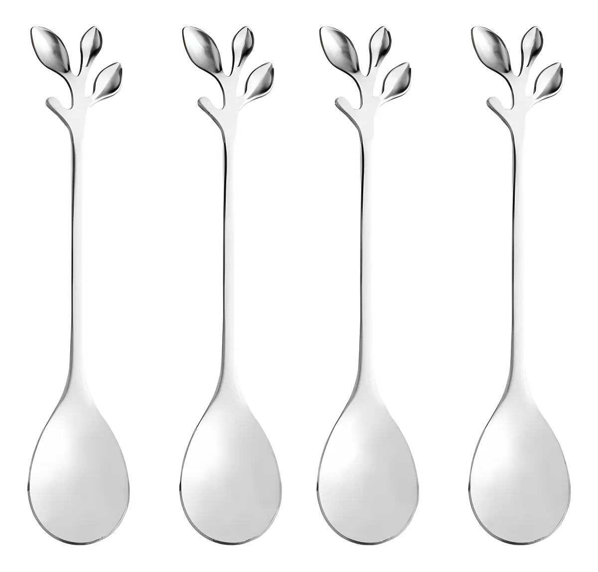 Conjunto 4 Colheres de Chá de Aço Inox Leaves Prata