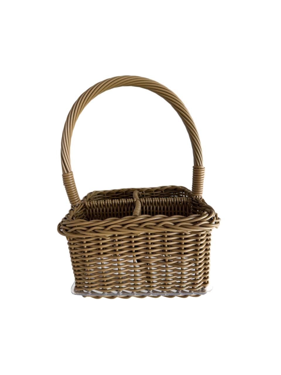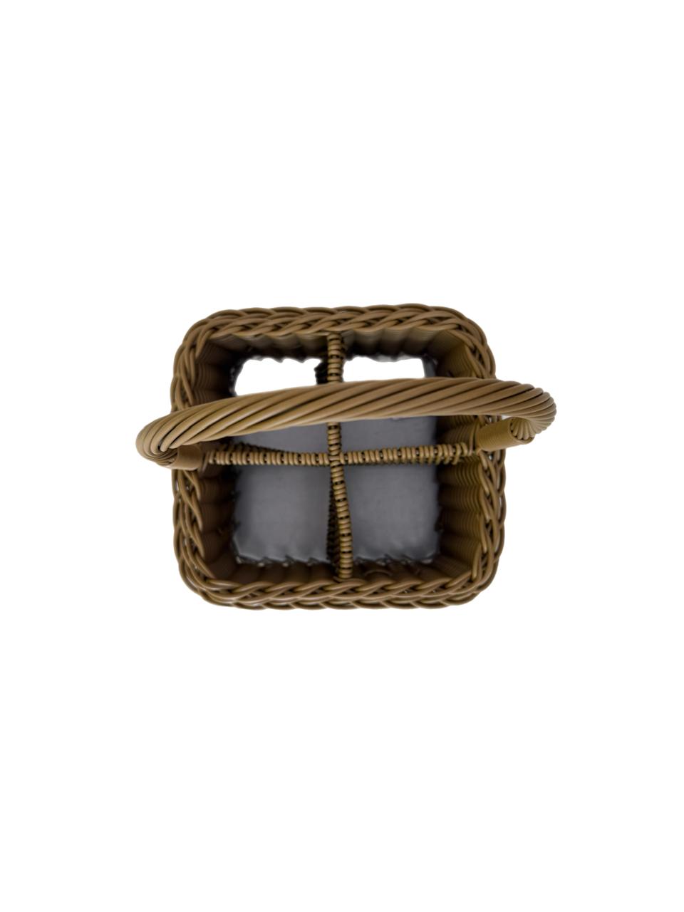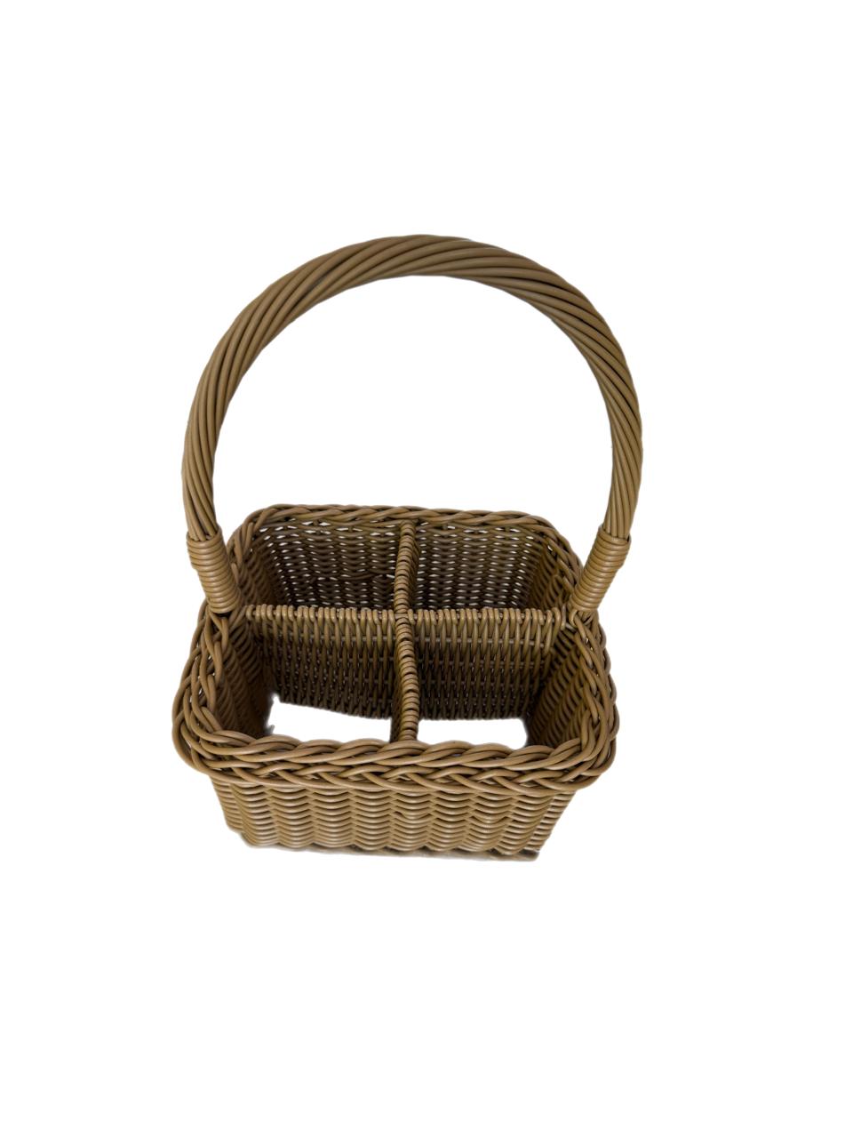 Organizador rústico com divisórias internas e alça resistente, perfeito para organizar talheres e utensílios de mesa com elegância.