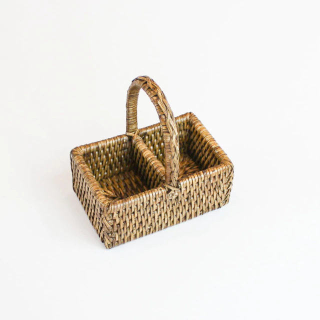 A cesta em rattan GILI é perfeita para acondicionar saches de adoçantes, saleiro, pimenteiro ou paliteiro, dando um toque elegante e sofisticado na sua mesa, combinando muito bem com todos os estilos.