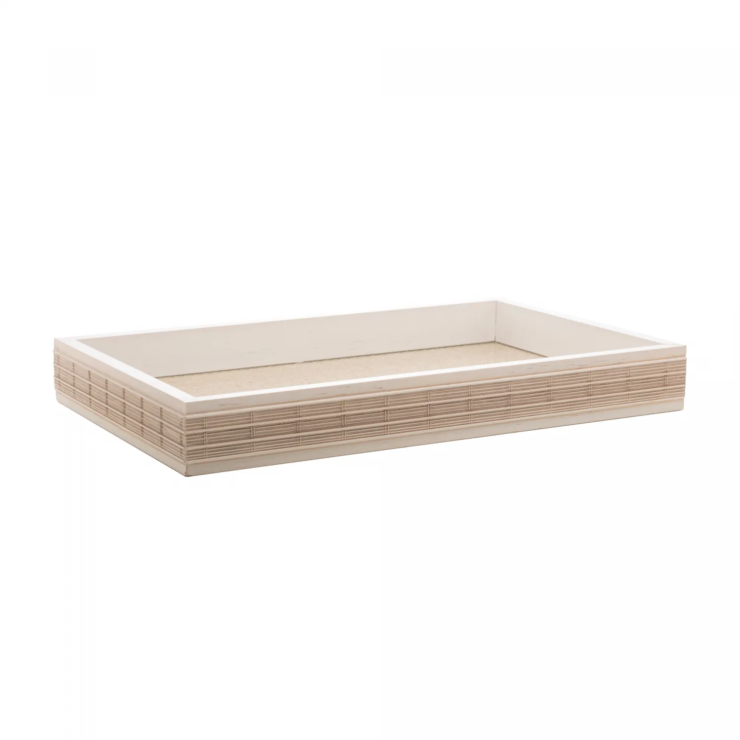 Com uma composição harmoniosa de madeira, sisal e bambu, esta bandeja apresenta um design orgânico e elegante, perfeito para diversos ambientes.