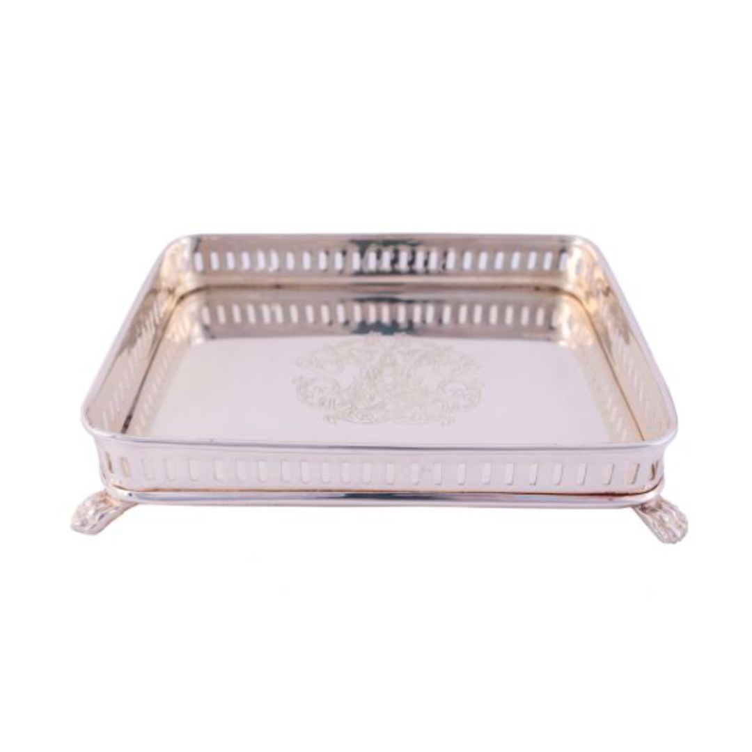 Travessa prata quadrada. Utilizado para decoração de ambientes e festas.