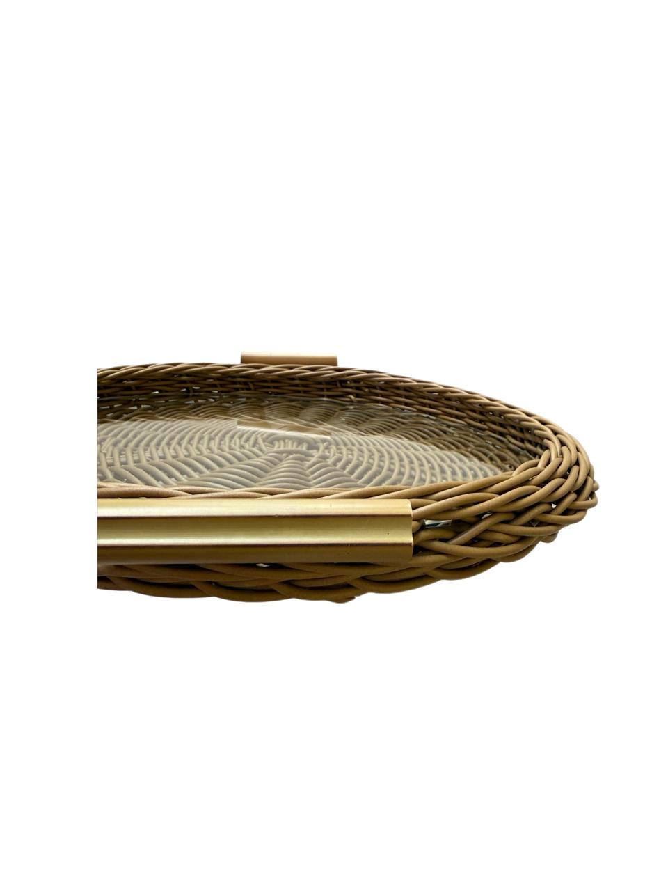 Transforme a apresentação de suas refeições com o nosso elegante prato de vidro, meticulosamente revestido com vime sintético e adornado com pequenas alças de bambu. Este prato combina a transparência cristalina do vidro com a textura sofisticada do vime sintético e o toque natural do bambu, criando um acessório de mesa que é tanto funcional quanto visualmente deslumbrante.
