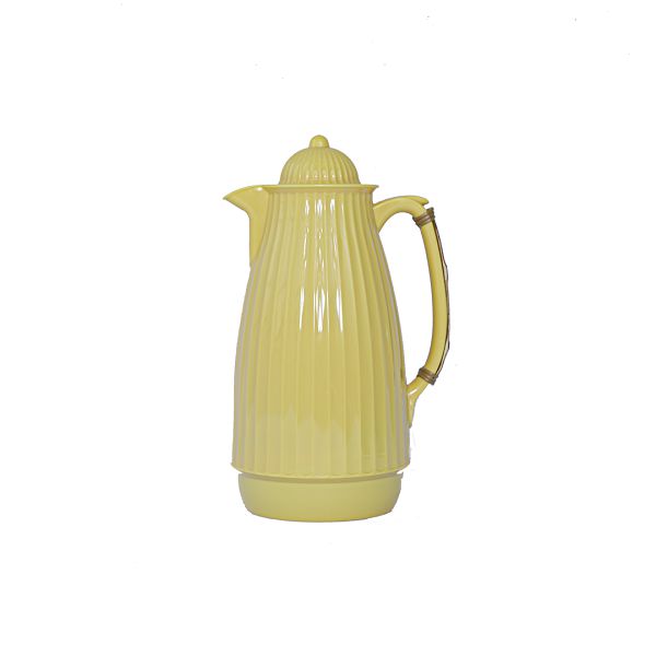 Garrafa térmica com detalhe de bambu na alça e formato delicado.