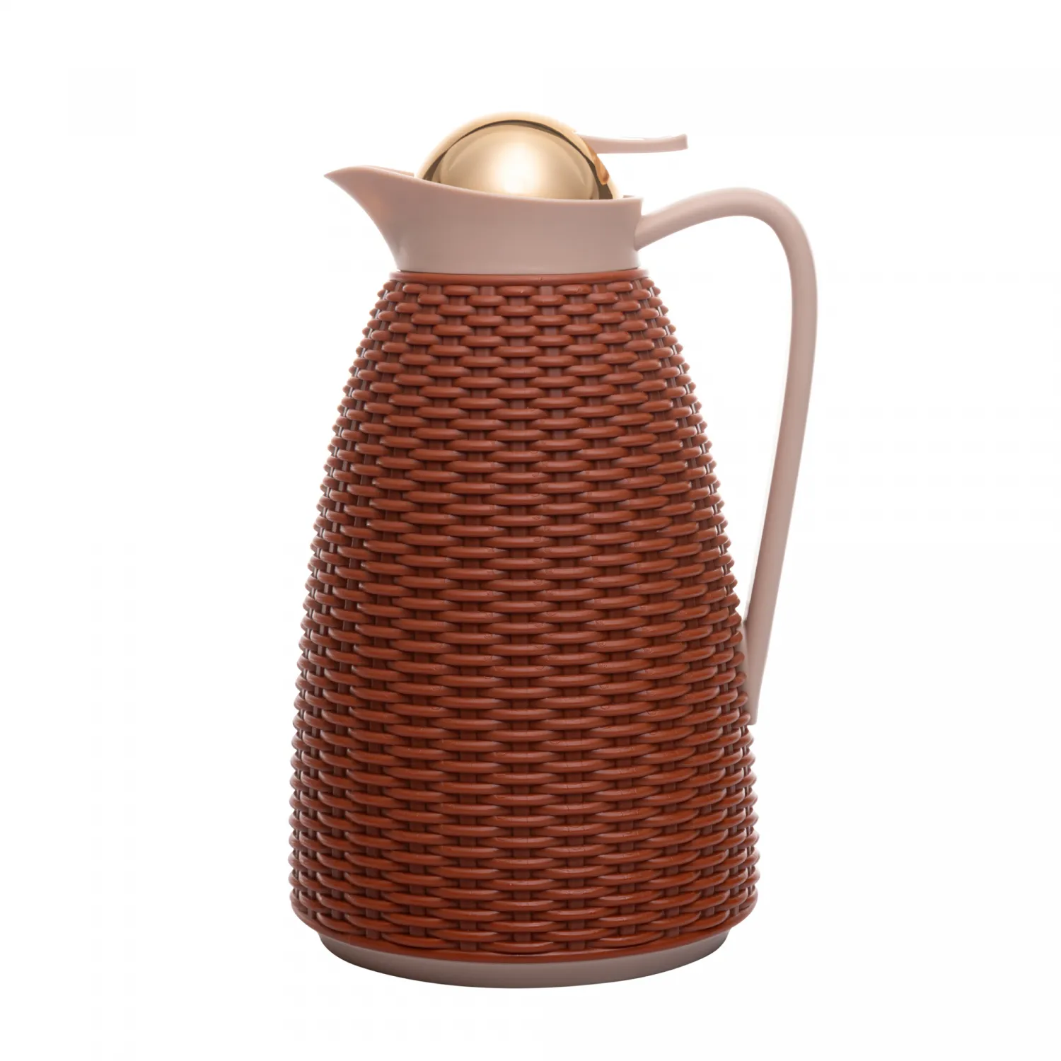 A Garrafa Térmica de Plástico Marrom com Tampa Dourada New Rattan da Wolff oferece uma combinação única de estilo e funcionalidade, proporcionando uma solução elegante para suas necessidades de servir bebidas.