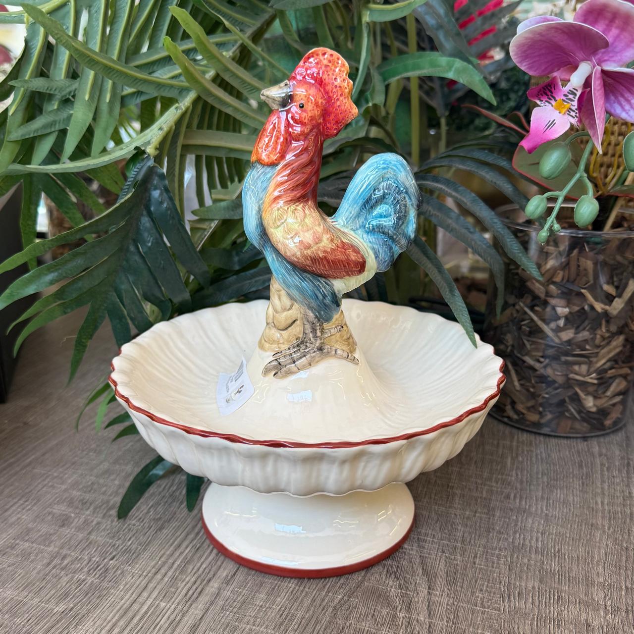 A Fonte de Galo da Zanatta Casa é uma peça de decoração artesanal em cerâmica, conhecida por sua pintura à mão e detalhes refinados.