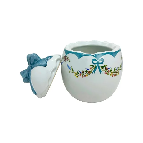 Pote Ovo em Pé de Cerâmica Páscoa Laço Primavera 11 x 15cm – Luiz Salvador