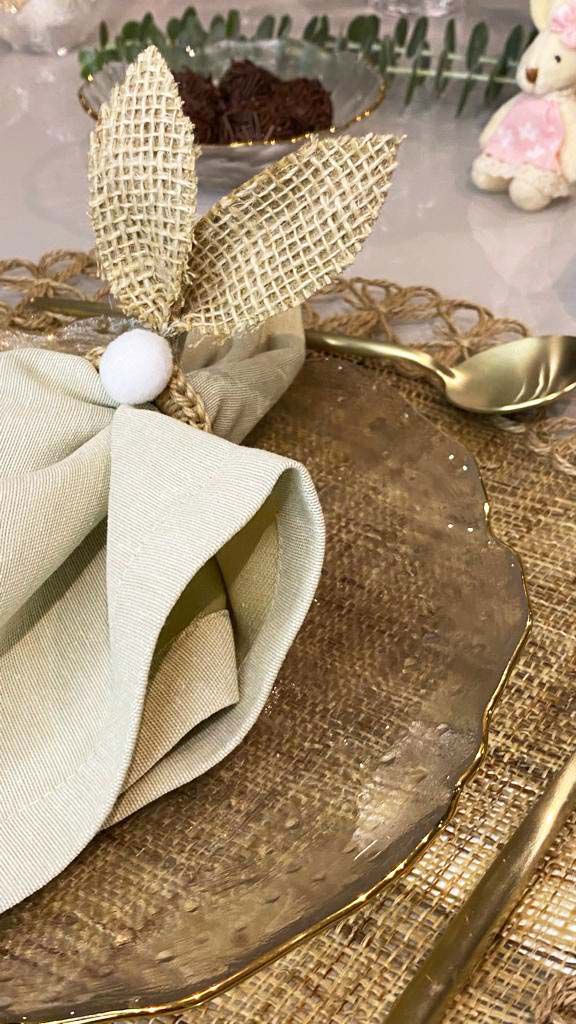 Argola para guardanapo em formato de orelha de coelho. Produzido no Brasil.